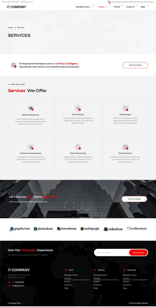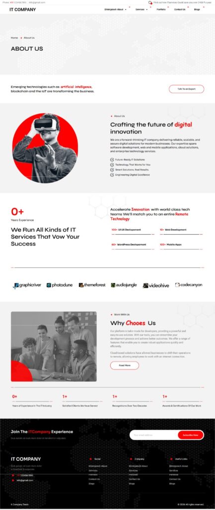 We are a forward-thinking IT company delivering reliable, scalable, and secure digital solutions for modern businesses. Our expertise spans software development, web and mobile applications, cloud solutions, and enterprise technology services.